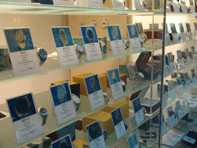 Gerne schaut die Kundschaft herein, denn jede Woche schmücken neue Stücke die Auslage: Markenuhren, Designer-Kreationen, gut erhaltene Erbstücke, das Angebot erweitert sich stets, bedingt durch den ständigen Ankauf aus privater Hand.
